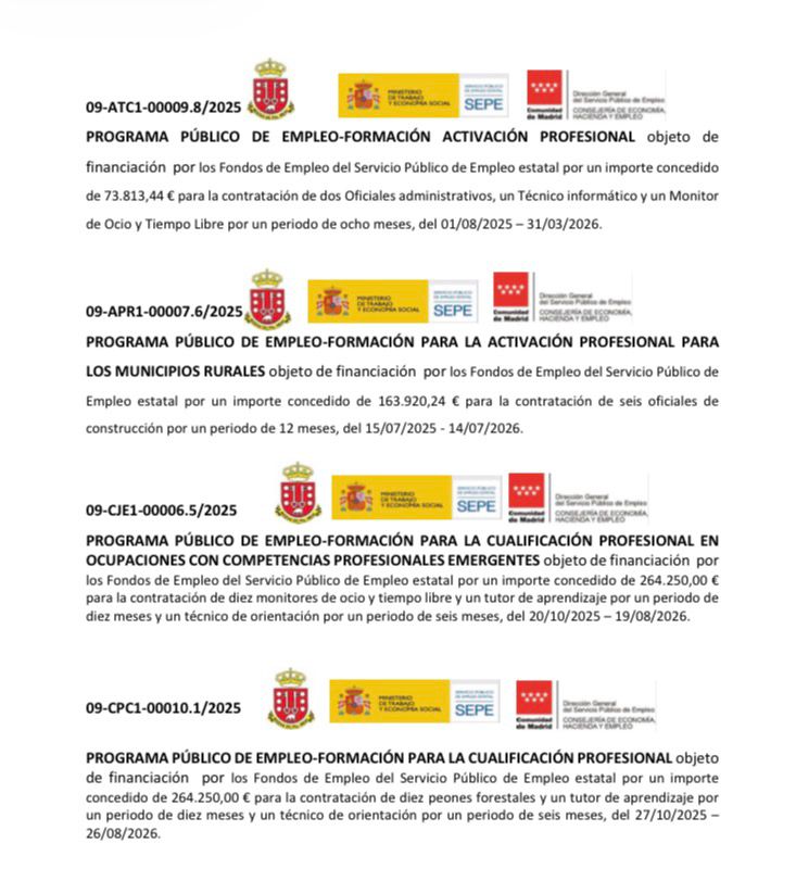 Diferentes programas de empleo que se están desarrollando actualmente.